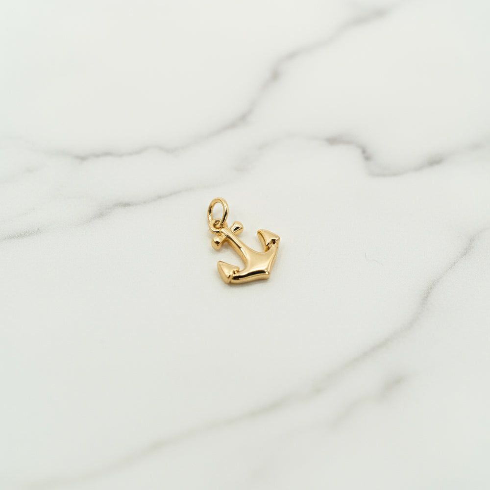 A nautical gold anchor charm. Crafted in gold fill, high quality, hypoallergenic, and suitable for everyday wear.