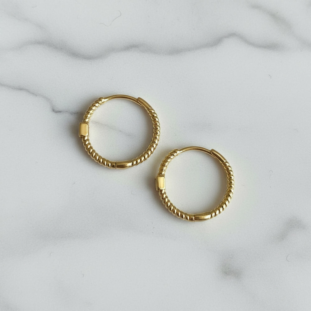 This set of 16mm braided hoops features intricate woven detailing and a single shimmering diamond stone for effortless elegance. Crafted in 14k gold, it’s lightweight, polished, and perfect for adding subtle texture and shine to any ear stack.