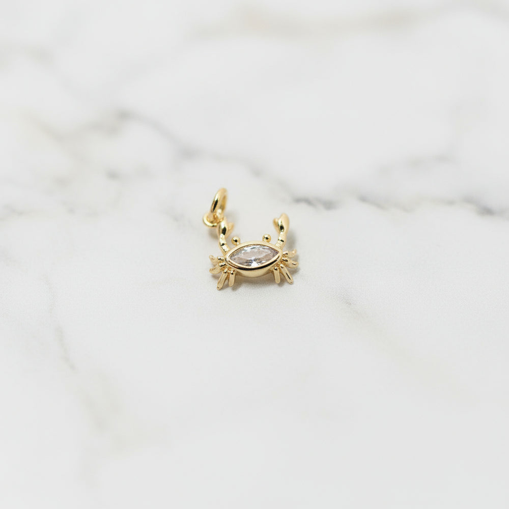 A crab with a diamond body Charm. Crafted in gold fill, high quality, hypoallergenic, and suitable for everyday wear.