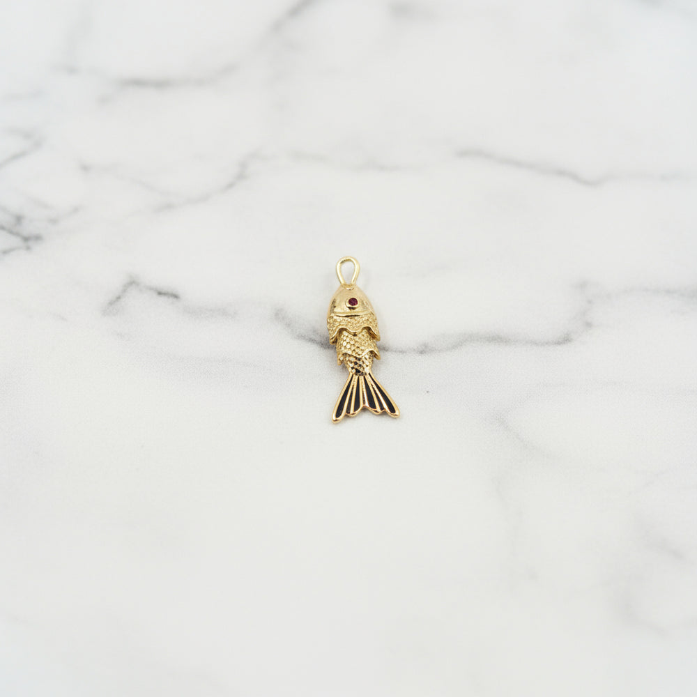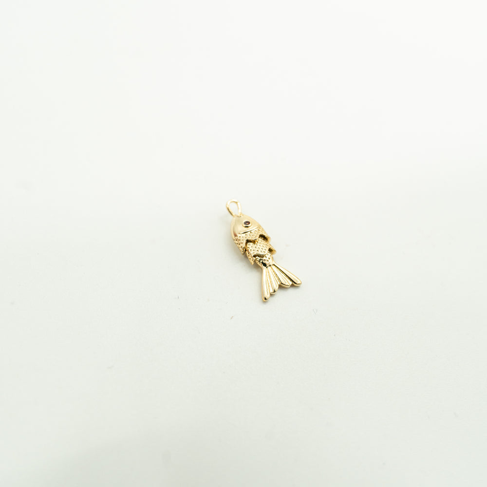 Modular scaled fish with orange eye. A coastal-inspired fish charm with delicate details. Crafted in gold fill, high quality, hypoallergenic, and suitable for everyday wear.