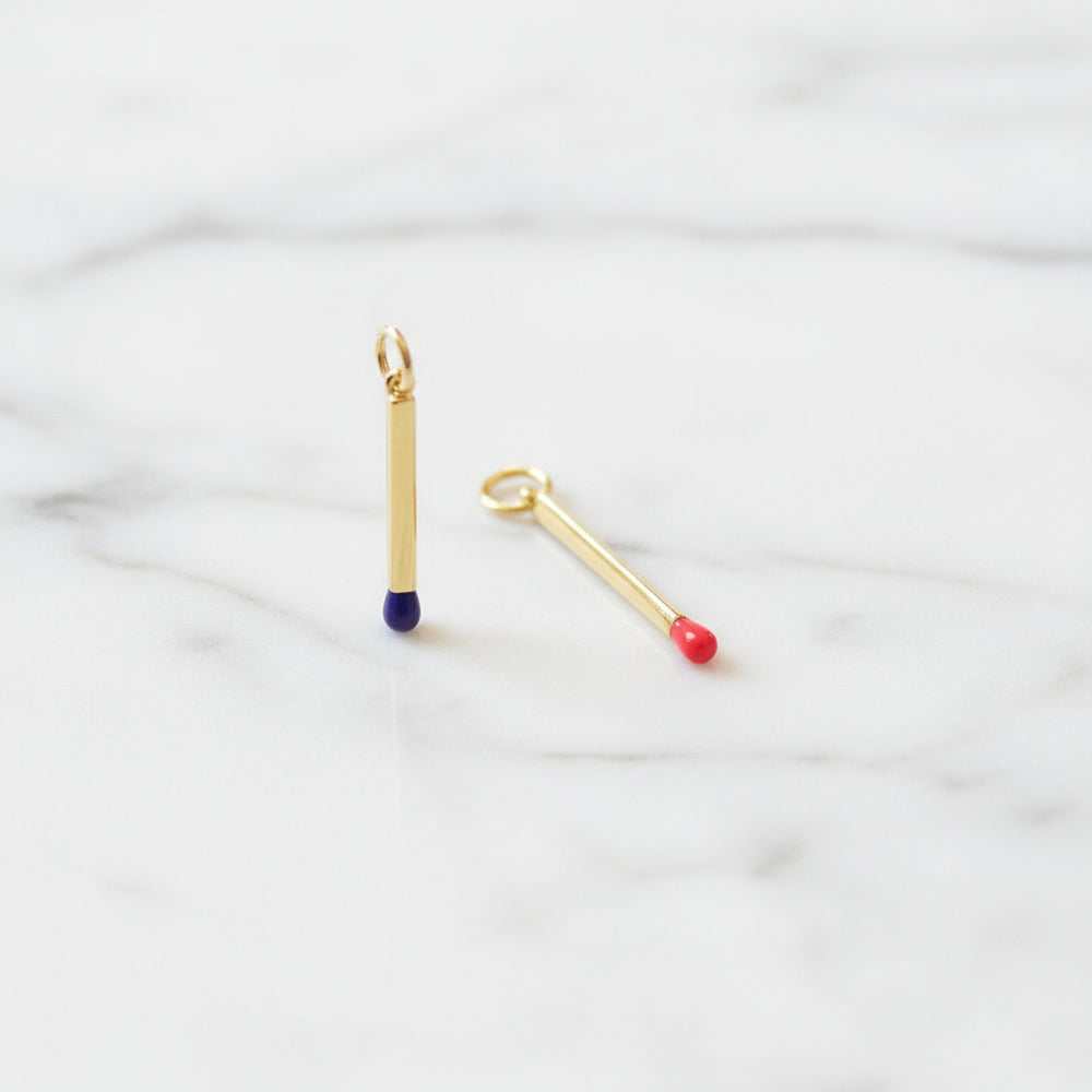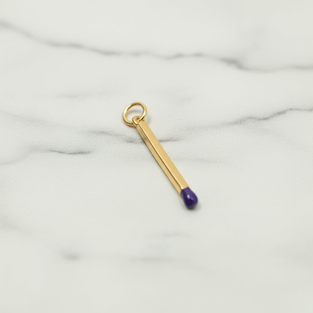 A match stick charm with modern style. Crafted in gold fill, high quality, hypoallergenic, and suitable for everyday wear.