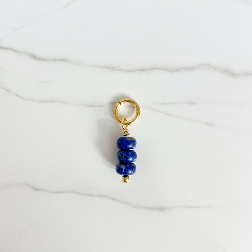 A trio of rich blue beads stacked in a delicate drop, this charm adds the perfect touch of color and movement to your ear stack. Simple, polished, and coastal-inspired, made to mix, match, and shine.