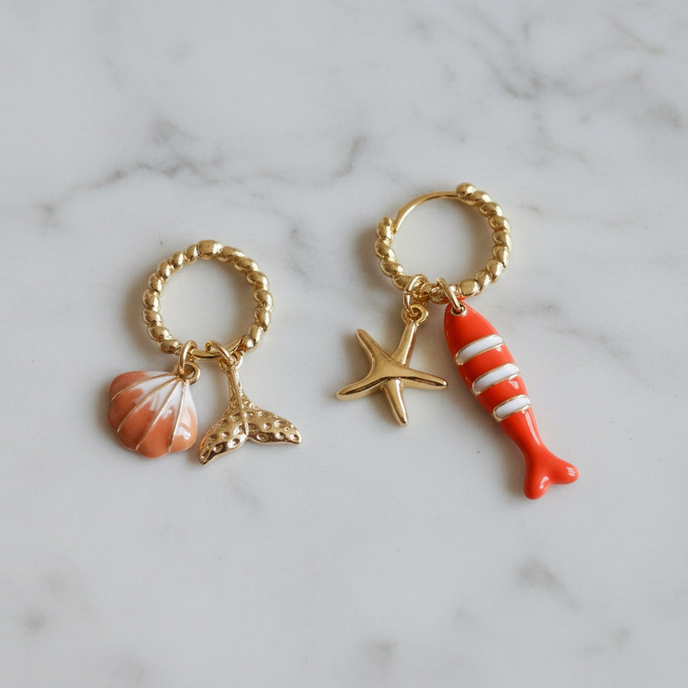 For the girl who feels most alive by the water. The Ocean Lover Bundle includes one pair of gold earrings and four mix-and-match charms inspired by coral reefs, soft orange tones, and the playful magic of sea creatures. Think peachy hues, tiny shells, and whimsical ocean icons. All curated to bring a splash of coastal color to your ear stack.
