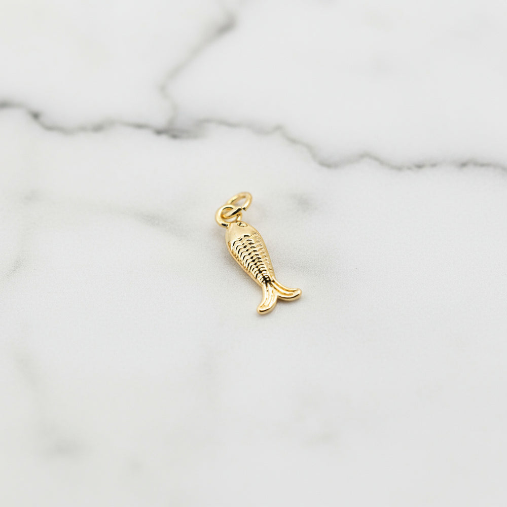 Minow Fish Charm- A coastal-inspired fish charm with delicate details. Crafted in gold fill, high quality, hypoallergenic, and suitable for everyday wear.
