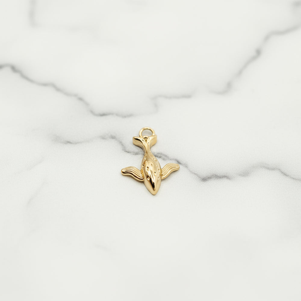 Large Whale Charm. A bold whale-shaped charm that captures ocean energy. Crafted in gold fill, high quality, hypoallergenic, and suitable for everyday wear.