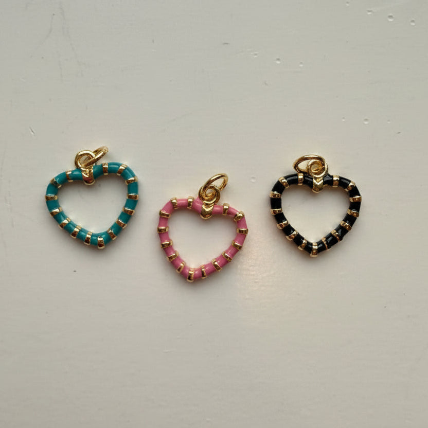 A little love in full color. These enamel-outlined heart charms add just the right touch of sweetness. These are open, airy, and edged in glossy color for a modern twist. Choose from bold black, flirty pink, or coastal turquoise, and mix them with your favorite hoops or studs for a look that’s perfectly Unpaired.